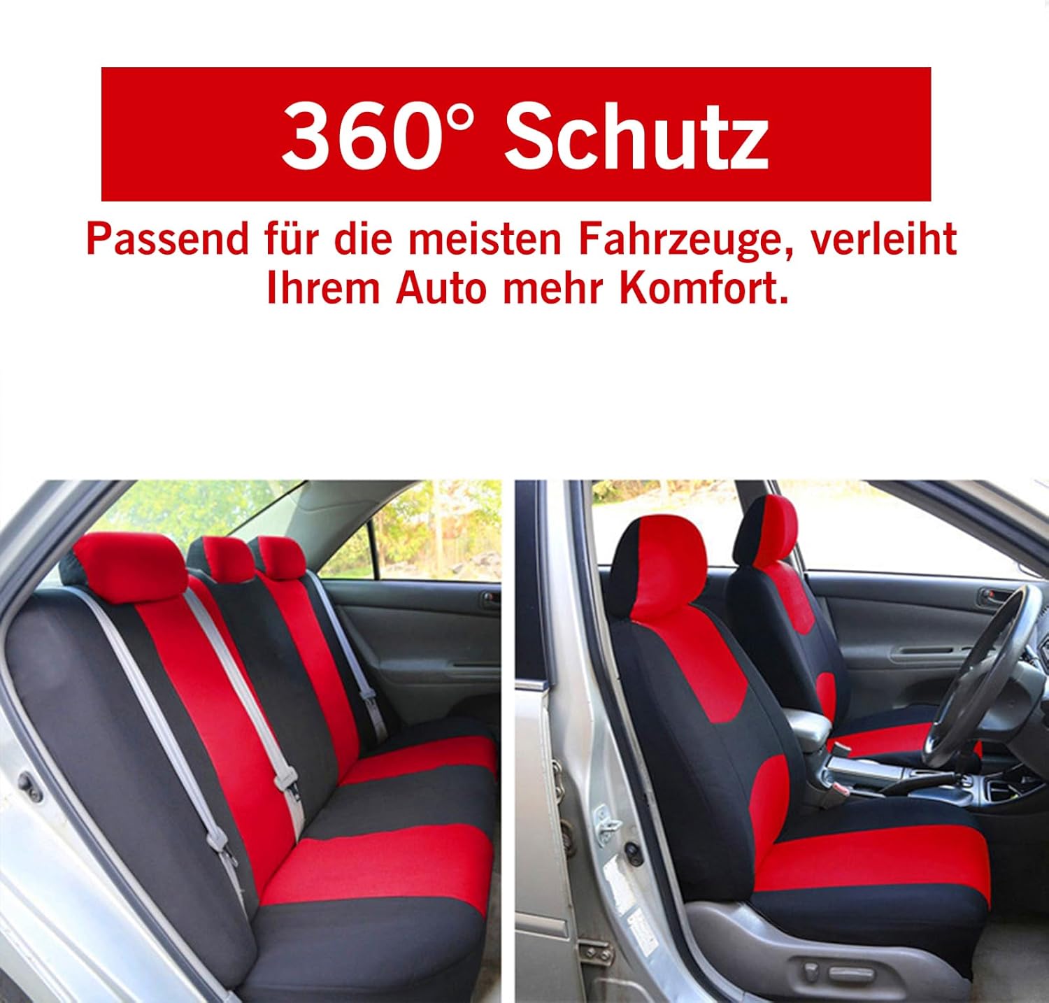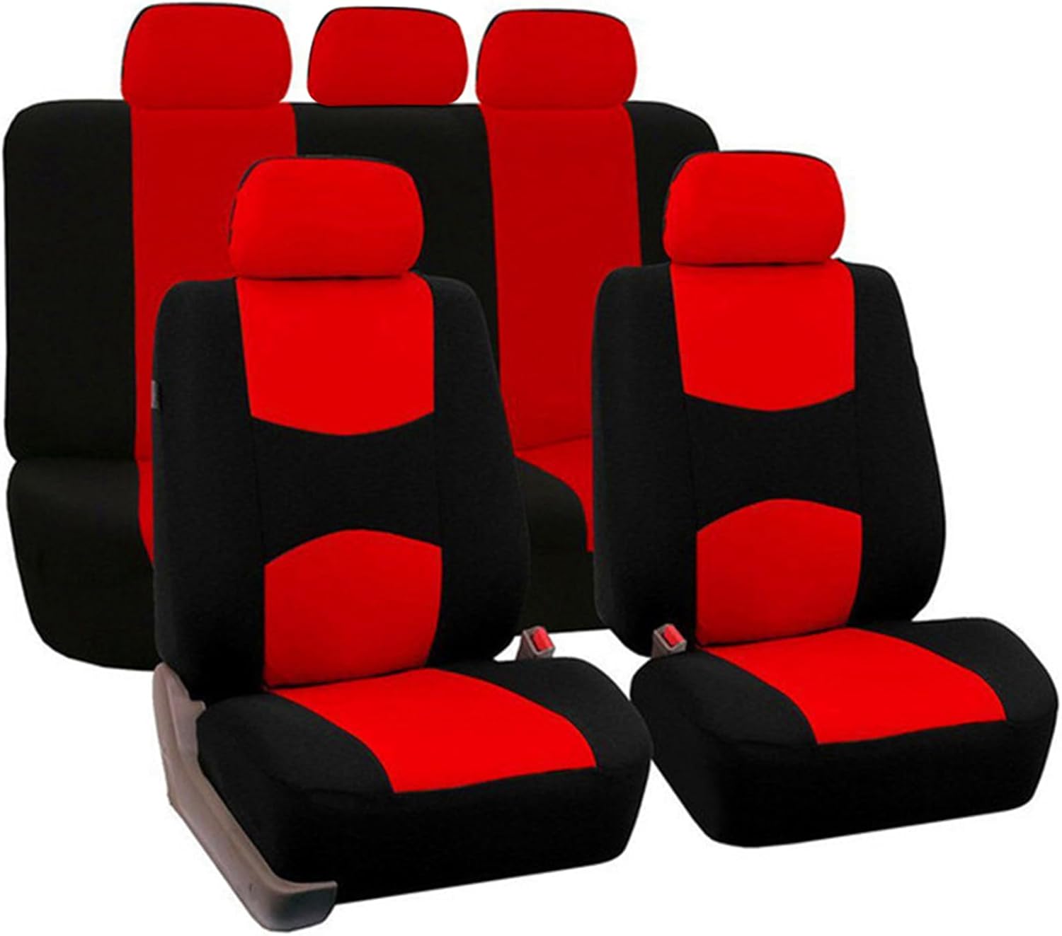 Universelles Autositzbezug-Set, atmungsaktiv, strapazierfähig, waschbar, 5-Sitzer-Schutzbezüge für Vordersitze und Kopfstützen, Schutz für den Fahrzeuginnenraum in allen vier Jahreszeiten, schmutzabweisend (Schwarz Rot)