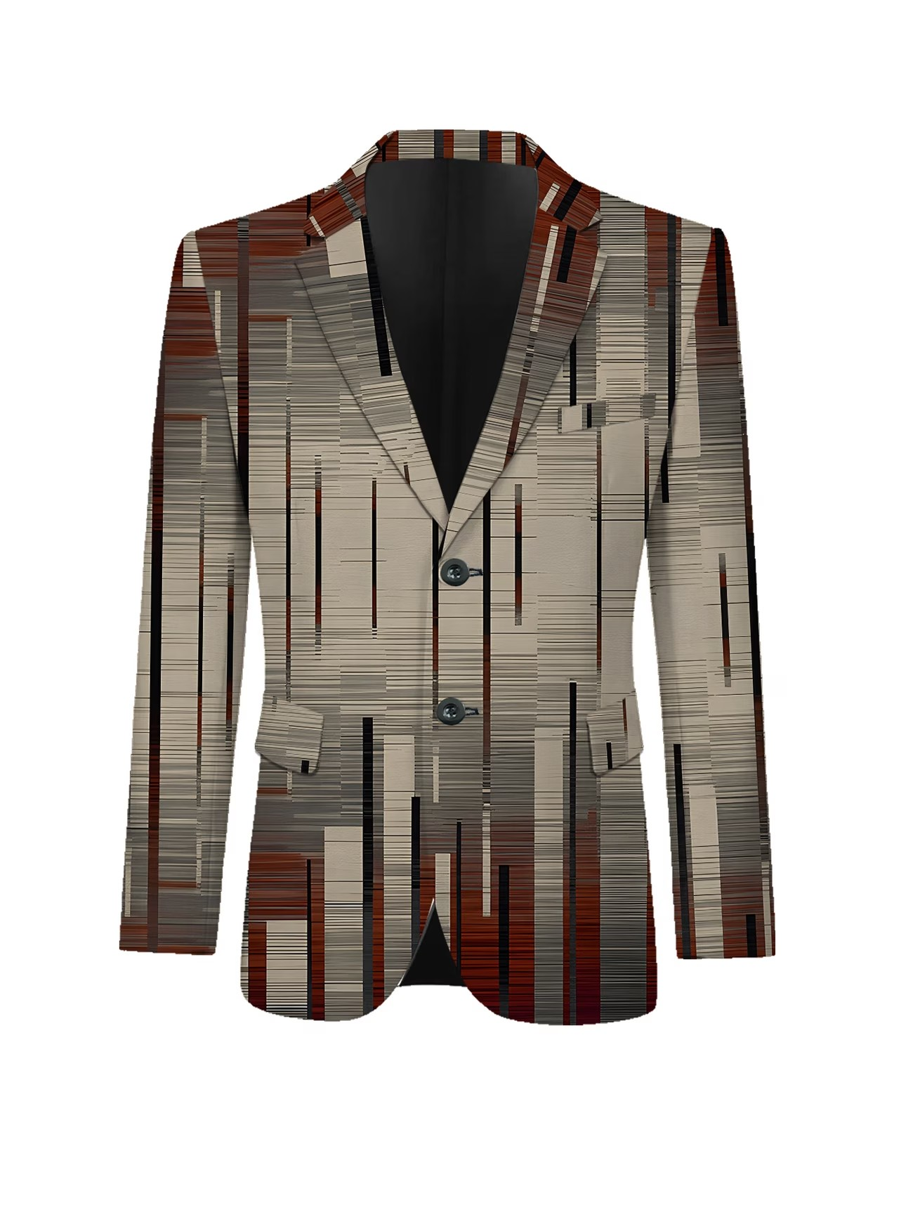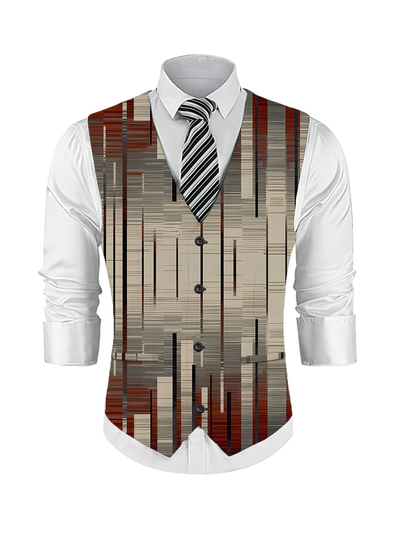3-teiliges Anzugset für Herren: Anzug mit Weste und Hose, Digitaldruck, ideal für Business und Reisen. Modischer Anzug für Bankette, Hochzeiten und andere festliche Anlässe. Vertikal gestreiftes, geometrisches Muster.