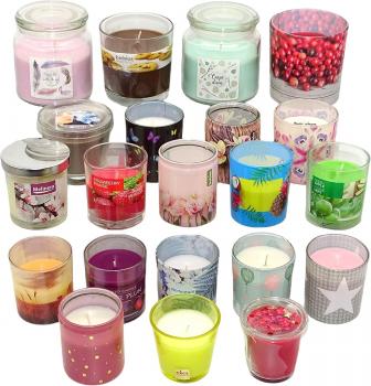 Kerzentyp – Eine Vielzahl von Duftkerzen im Glas in verschiedenen Formen und Größen für endlose Dekorationsmöglichkeiten.