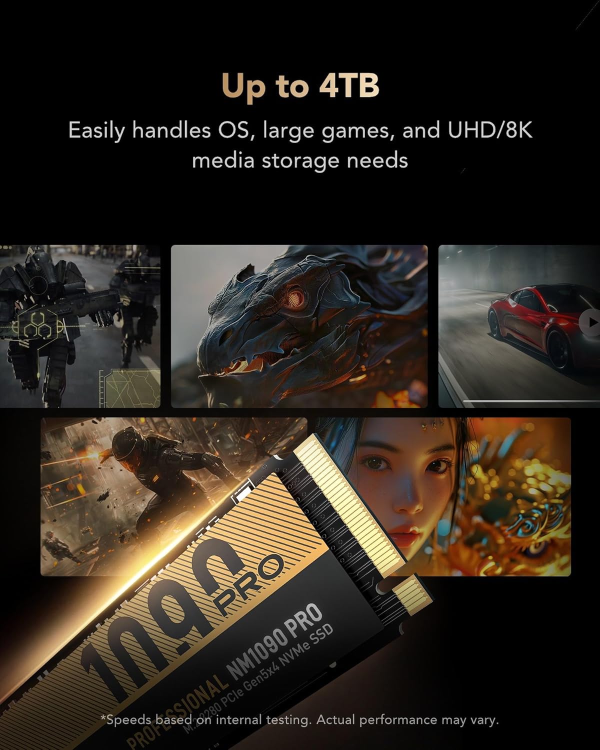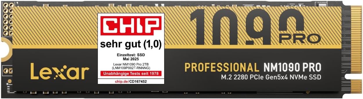 1 TB PCIe 5.0 Gen5 NVMe SSD NM1090 Pro, bis zu 14.000 MB/s, fortschrittliches Wärmemanagement, DirectStorage-fähige interne SSD, ideal für KI-Anwendungen, Gaming und Content-Erstellung