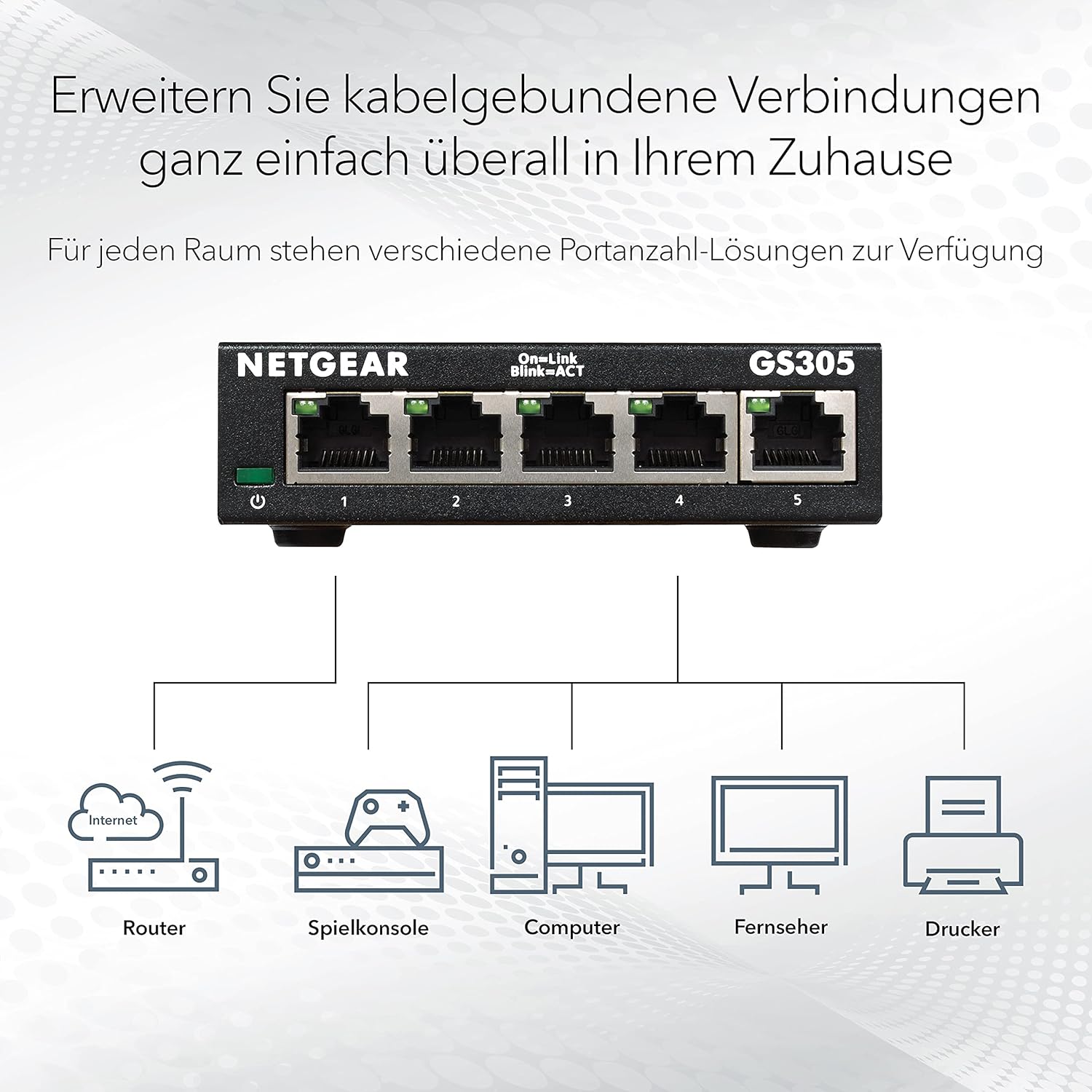 GS305-300PES 5-Port Gigabit-Switch (lüfterlos, einfache Plug-and-Play-Installation, Layer 2, robustes Metallgehäuse, energiesparend, RJ45-Metallanschlüsse)