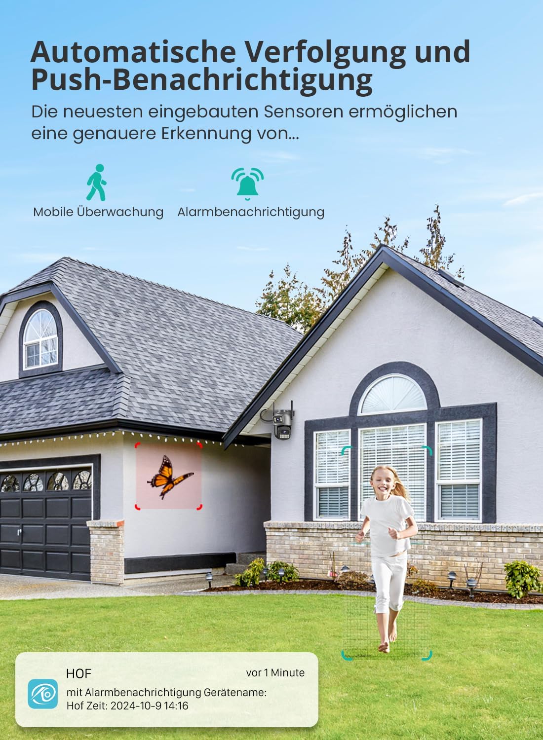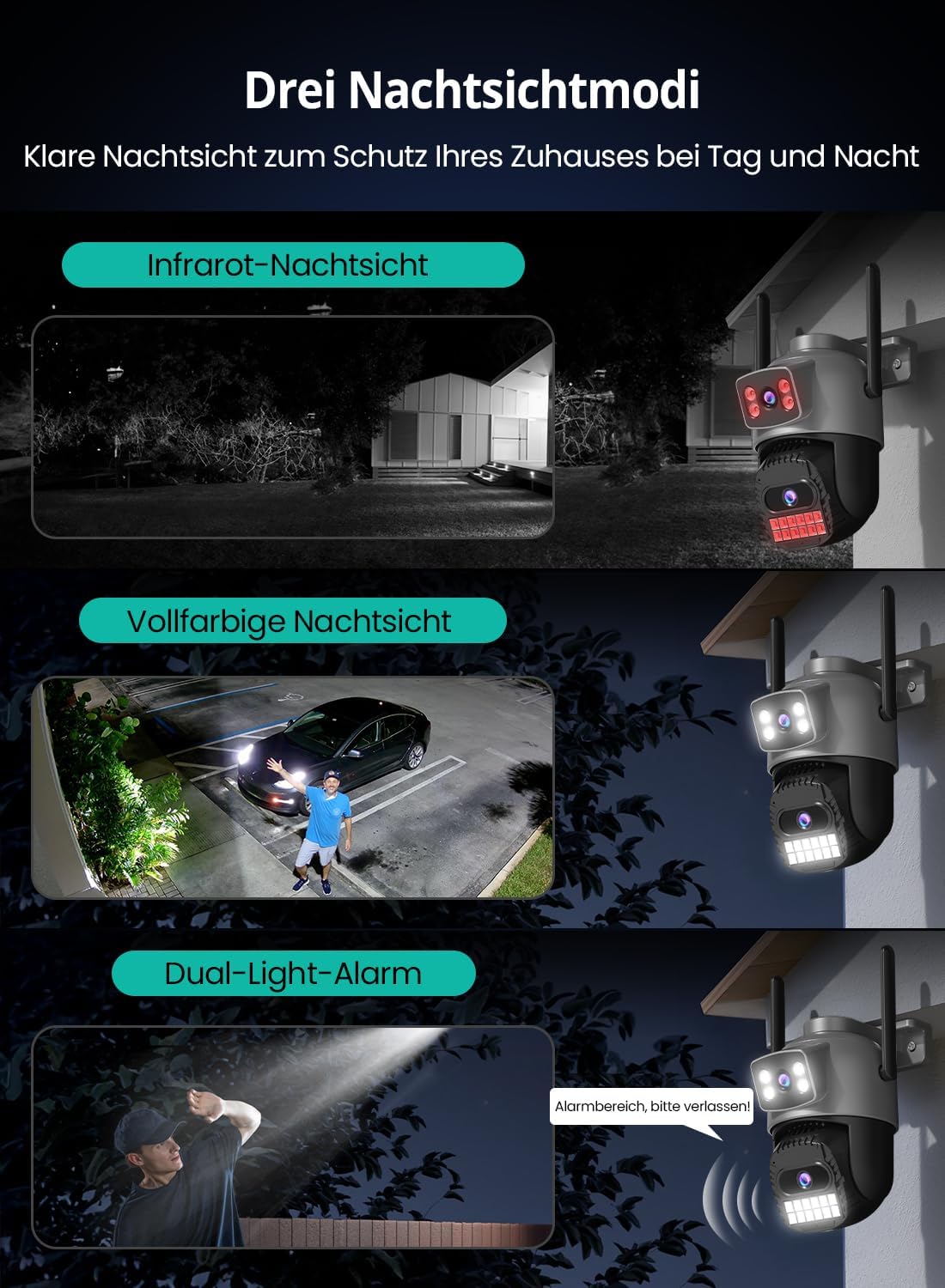 Mobile Preview: 2,5K-Außenkamera – 2,4/5-GHz-WLAN-360°-PTZ-Überwachungskamera mit Dual-Objektiv, Farbnachtsicht, intelligenter Verfolgung, Zwei-Wege-Audio, kostenlosem Cloud-Speicher und Schutzart IP66
