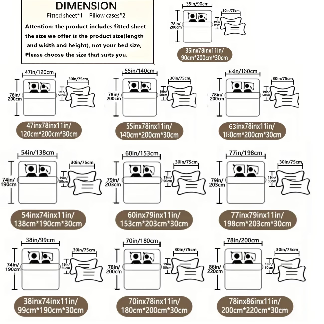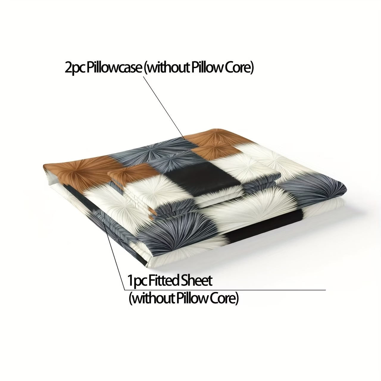 Mobile Preview: 3-teiliges Premium-Spannbettlaken-Set mit geometrischem Muster | Enthält 1 Spannbettlaken und 2 Kissenbezüge, komfortabel und stilvoll, geeignet für alle Schlafzimmergrößen und Hotels, ganzjährig verwendbar, Polyester, maschinenwaschbar