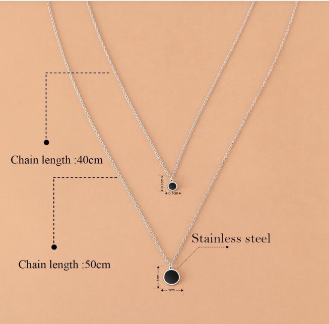 Preview: Edelstahl-Halsketten mit schwarzem Acryl-Scheibenanhänger, Choker-Ketten, koreanische Mode, mehrlagige Halsketten für Damen