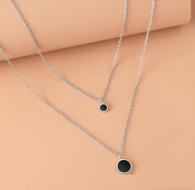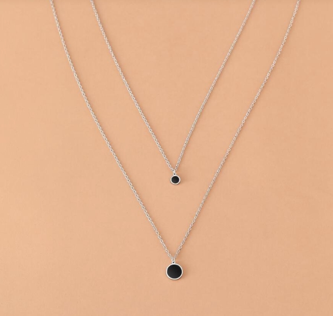 Mobile Preview: Edelstahl-Halsketten mit schwarzem Acryl-Scheibenanhänger, Choker-Ketten, koreanische Mode, mehrlagige Halsketten für Damen