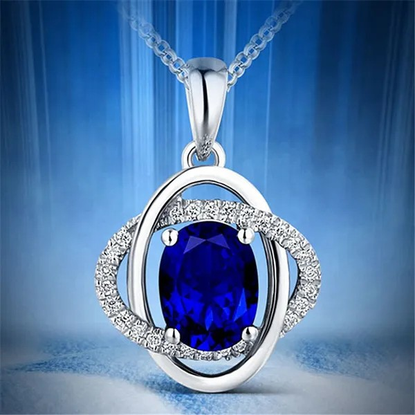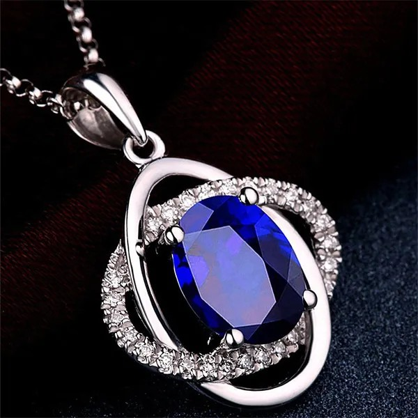 Königliche & elegante Halskette mit ovalem blauem Saphiranhänger
