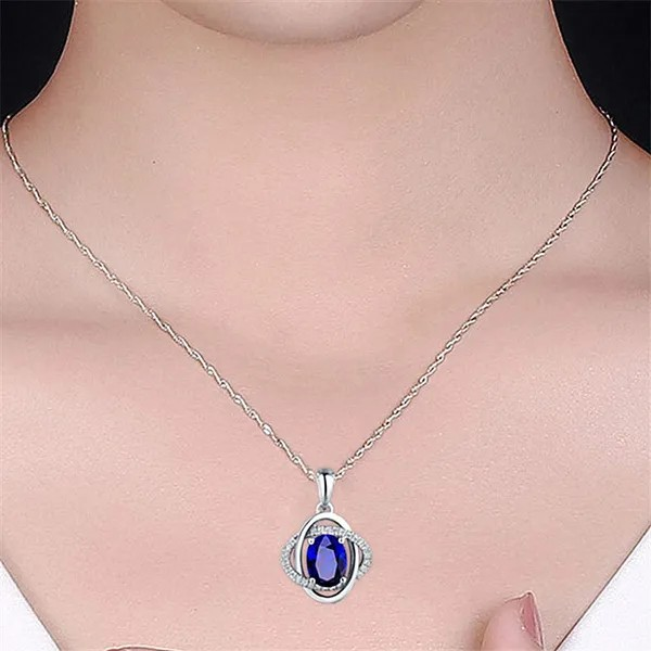 Mobile Preview: Königliche & elegante Halskette mit ovalem blauem Saphiranhänger