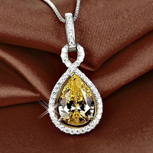 Exquisite Halskette mit Citrin-Anhänger in Tropfenform