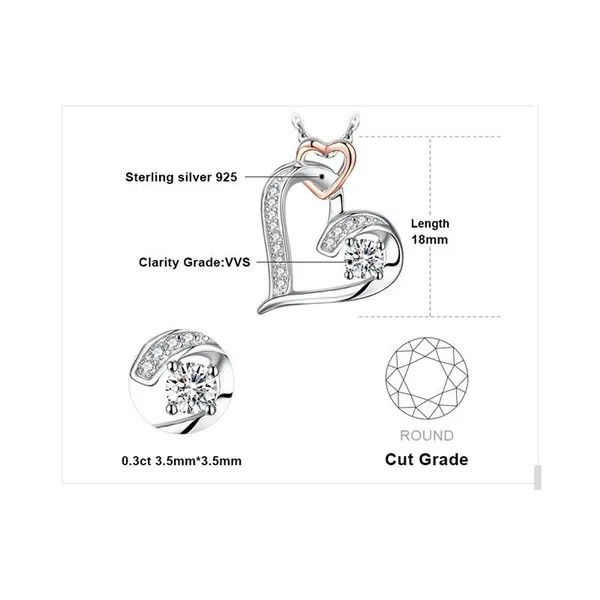 Romantische zweifarbige Halskette mit Doppelherz-Anhänger für Damen