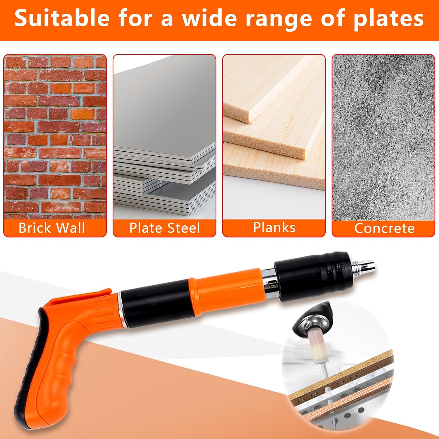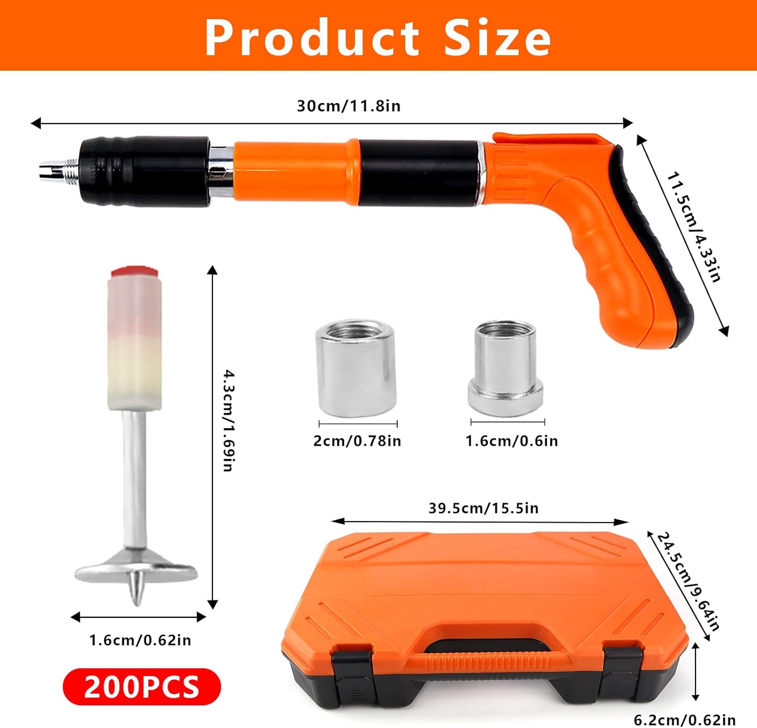 Die manuelle Stahl-Nagelpistole ist ein kompaktes Bolzenschussgerät speziell für Beton- und Stahluntergründe. Dank des massiven Stahl- und Aluminiumgehäuses ist sie robust und langlebig – ideal für schwere Trockenbau-, Installations- oder Sanierungsarbeiten. Enthalten sind 200 Nägel, damit du sofort starten kannst.